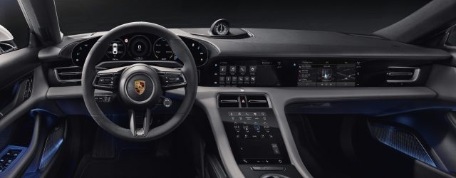 Erster Blick ins Porsche-Taycan-Cockpit: clean, reduziert, digital.
