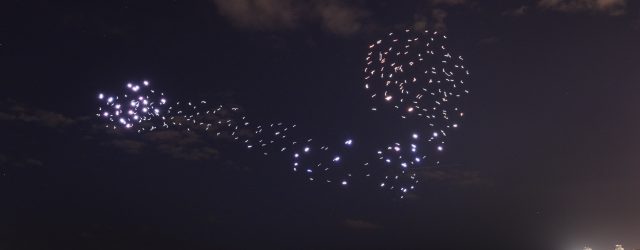FRANCHISE FREEDOM: Wenn künstliche Intelligenz zu intelligenter Kunst wird. Komplexe Algorithmen orchestrieren 300 Drohnen zum Flugbild eines Vogelschwarms.