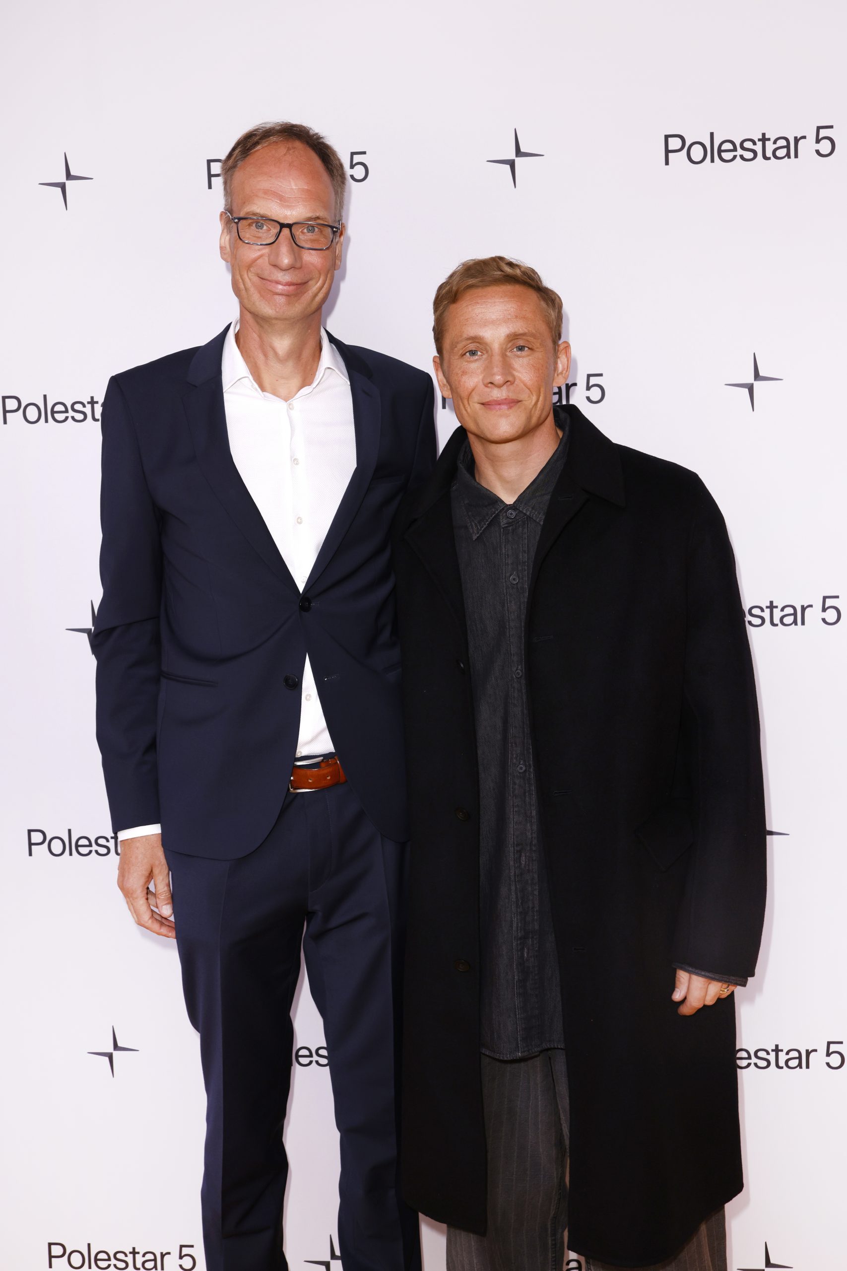MUNICH, GERMANY – SEPTEMBER 8: Michael Lohscheller (CEO Polestar) and German actor and director Matthias Schweighoefer at Polestar 5 Golden Carpet Event at Muenchen Hoch5 on September 8, 2025 in Munich, Germany. (Photo by Isa Foltin/Polestar via Getty Images)