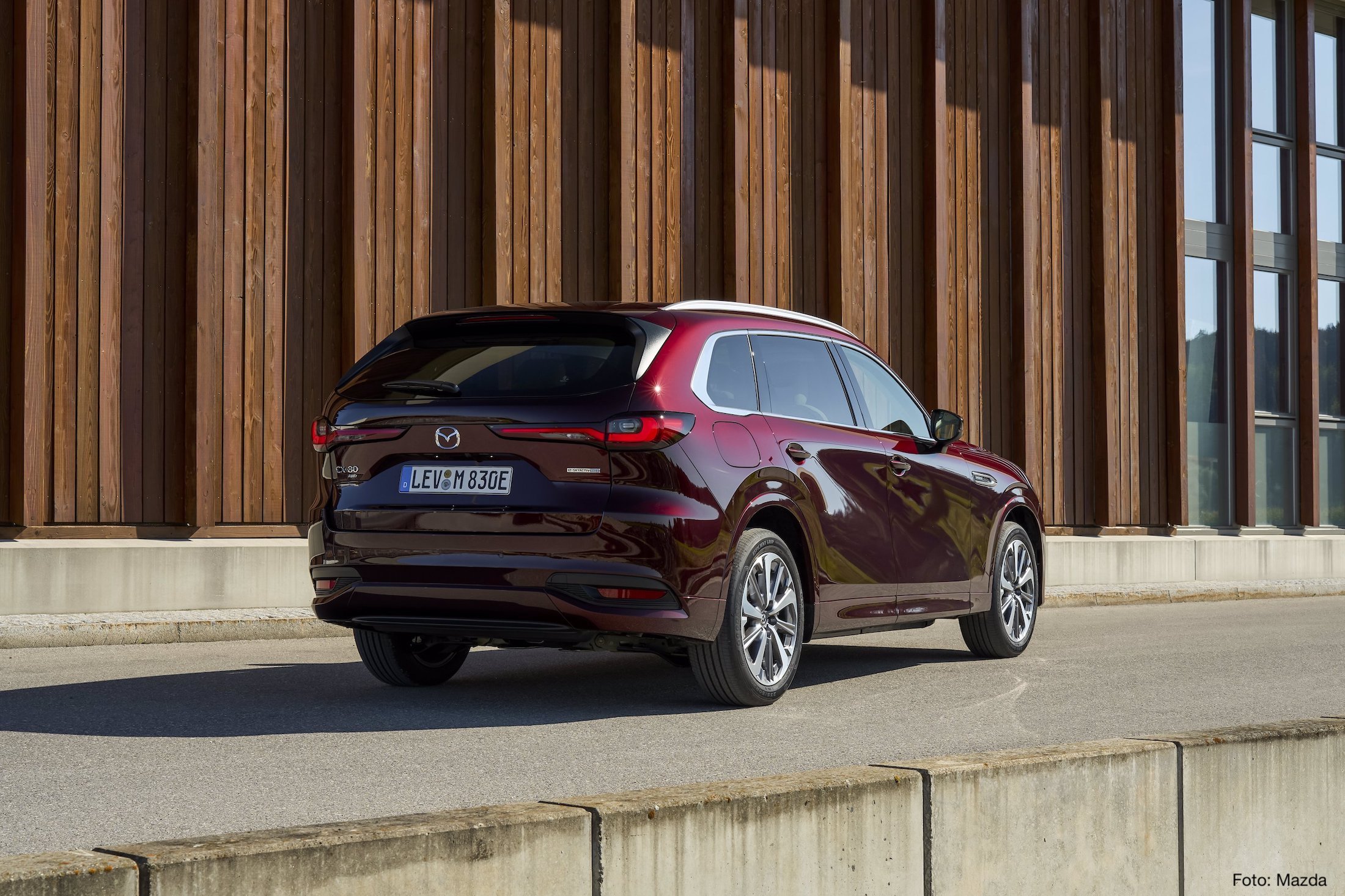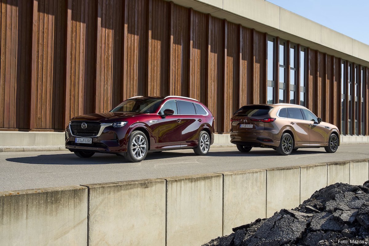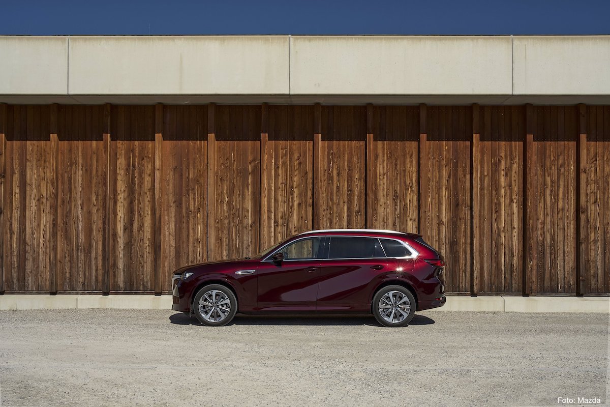 Brandneues Mazda-SUV der Fünf-Meter-Klasse. Benziner-Elektro-Kombination mit 241 kW (327 PS) Systemleistung. Allradantrieb. Elektrische Reichweite im Stadtbetrieb 67 Kilometer.