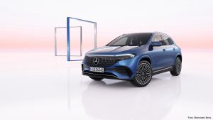 Der EQA steht auf der Basis des Mercedes GLA, das ist ein Mittelklasse-Crossover zwischen Schrägheck-Limousine und SUV. Funktionale Vorteile sind eine höhere Sitzposition und etwas mehr Bodenfreiheit. Den Vollelektriker gibt es in der Basisversion als Fronttriebler (EQA 250), die Modellversionen EQA 300 und EQA 350 sind Allradautos mit Elektromotoren an der Vorder- und Hinterachse.