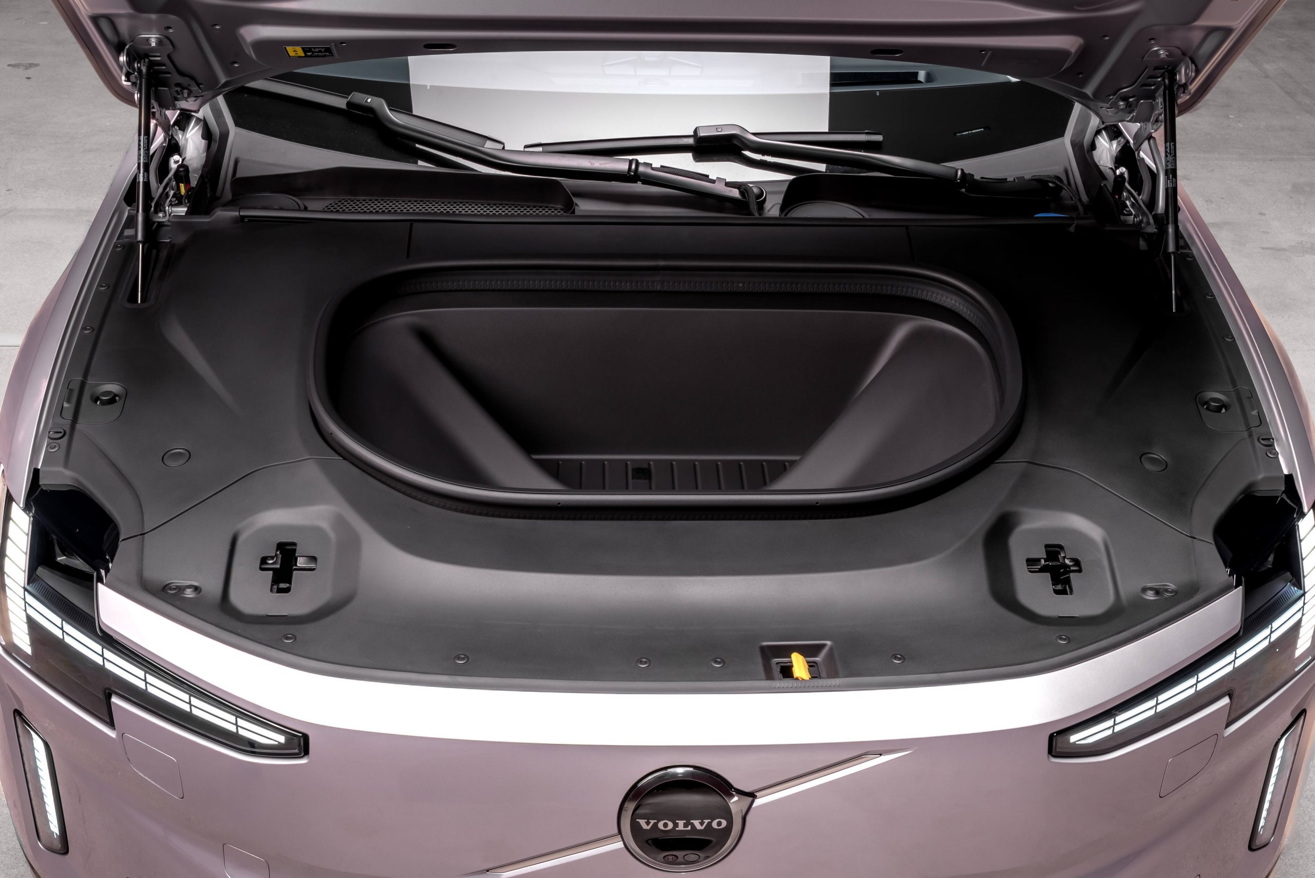 Die Rücksitze können einzeln, in Kombination oder komplett umgeklappt werden und vergrößern das Kofferraumvolumen von 424 Liter auf 1427 Liter. Zusätzlich gibt es vorn einen Frunk mit 27 Litern Fassungsvermögen – ideal für die Aufbewahrung des Ladekabels.